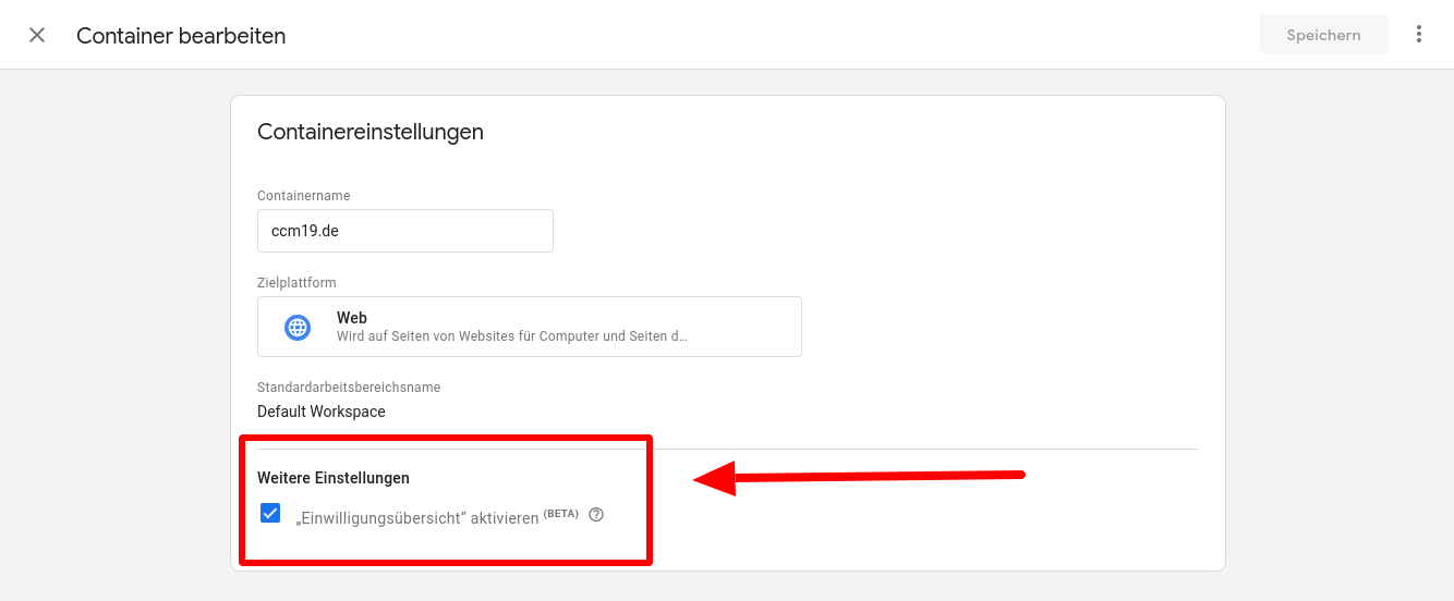 El Modo Consentimiento de Google también puede integrarse a través de Google Tag Manager. Para ello, Google ofrece la posibilidad de reaccionar a los tipos de consentimiento de las etiquetas. Estos tipos de consentimiento ya están integrados en las plantillas de servicios como Google Analytics o Google Ads Converson Tracking y, por lo general, no es necesario realizar más ajustes en el Tag Manager. Sólo tiene que activar los tipos de consentimiento en las respectivas integraciones en su interfaz CCM19-.
