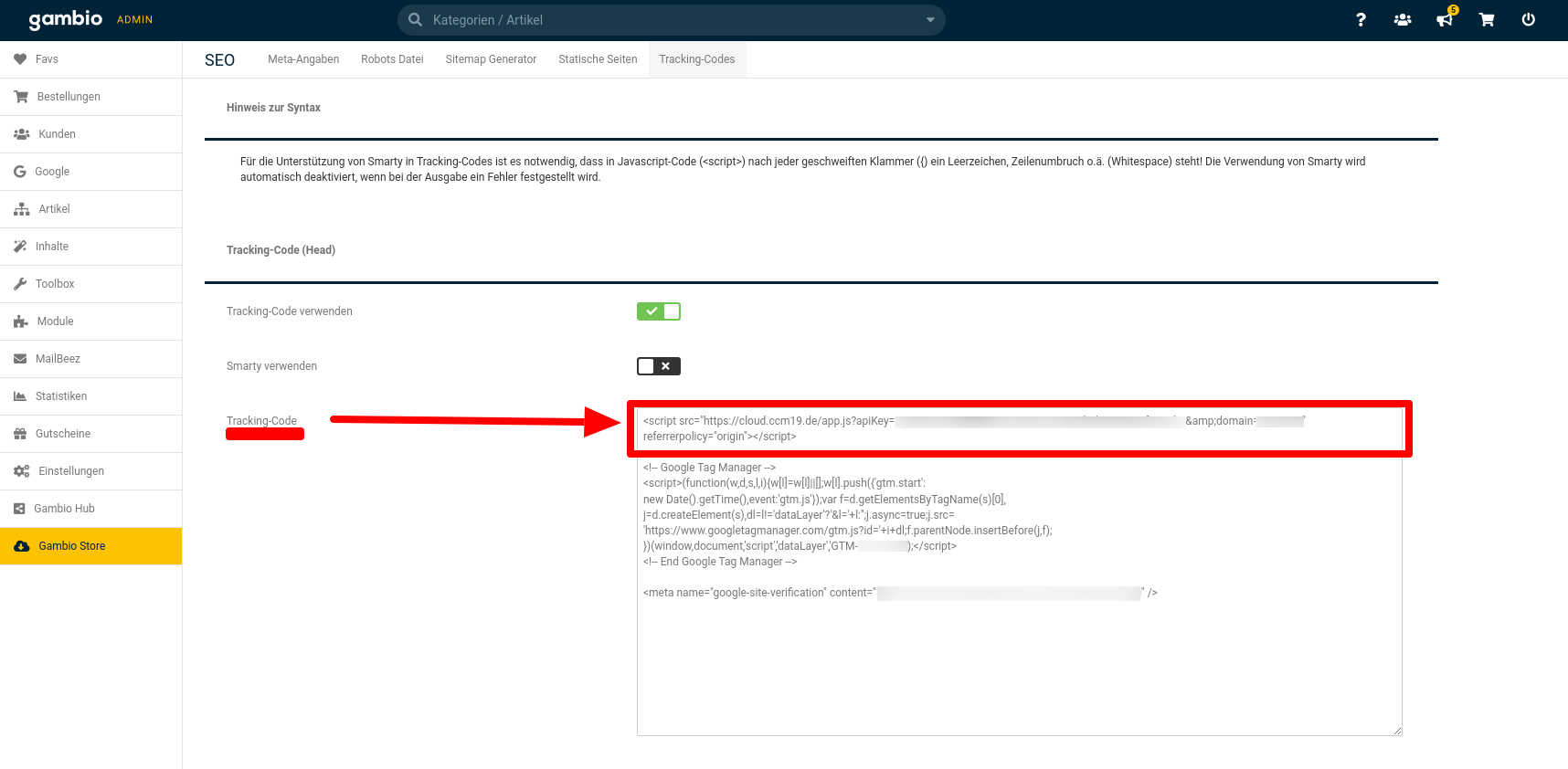 Gambio ofrece la posibilidad de integrar scripts y otros códigos en el sitio
