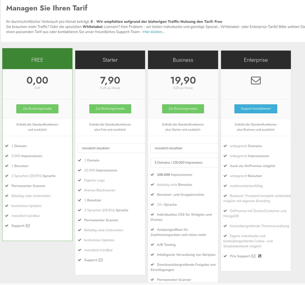 Aquí puede seleccionar la tarifa adecuada para usted. En la parte superior puede ver el consumo medio mensual, incluida la tarifa recomendada. La cifra se refiere al valor anterior más un pequeño margen de seguridad.