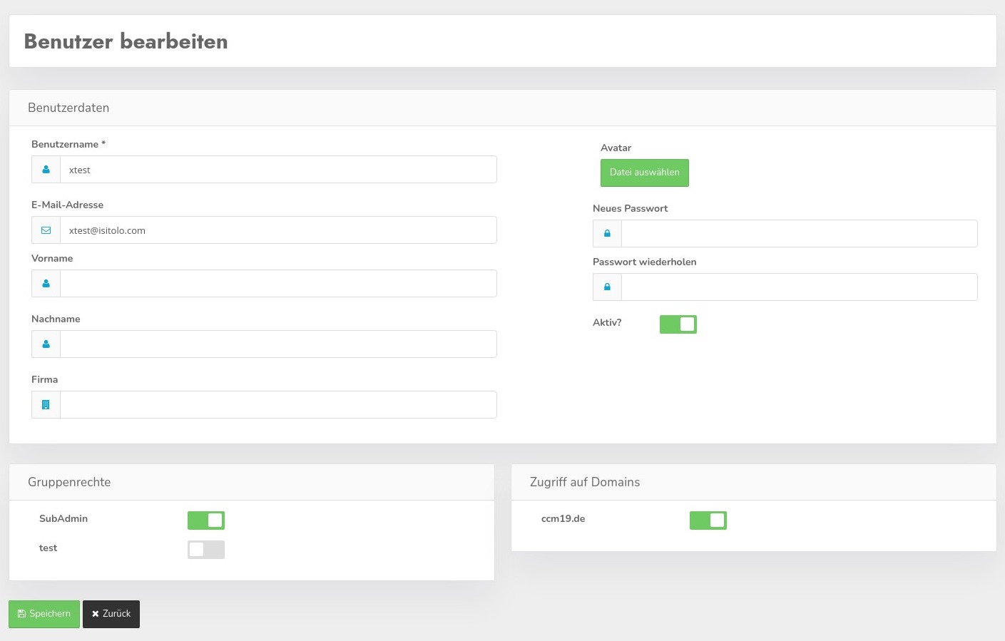 Con la combinación de los derechos de grupo y el acceso al dominio-, puede definir, por ejemplo, que el usuario sólo pueda acceder a un dominio específico y que sólo pueda editar allí el sello- y los enlaces de protección de datos. Encontrará más información al respecto en la documentación Administración de grupos.
